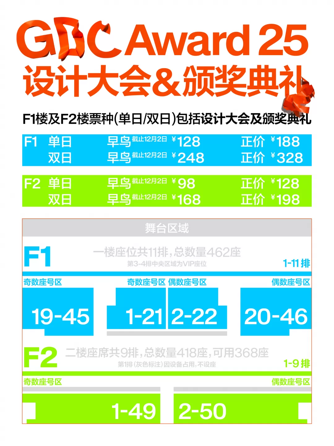 本活动门票仅在"GDC设计奖"官方活动行小程序、“Design360”官方小程序、“陆俊毅设计现场”官方公众号推文二维码链接有售,其他平台及渠道均视为无效。