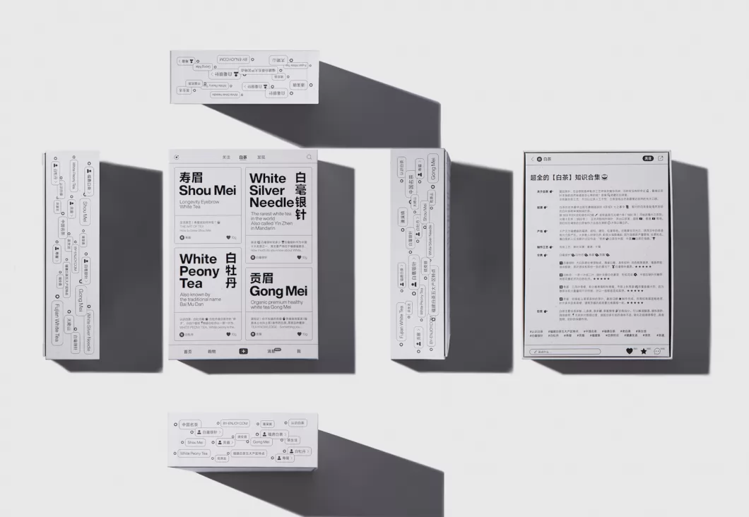 In this packaging design, we focus on the modern social media ecosystem and integrate both online and offline social scenes, infusing the tea packaging with more social attributes. We have created five different sizes of tea packaging corresponding to five popular social media platforms. Each packaging visually simulates the interface features of the respective platform, organically integrating the tea products into consumers' daily social experiences.