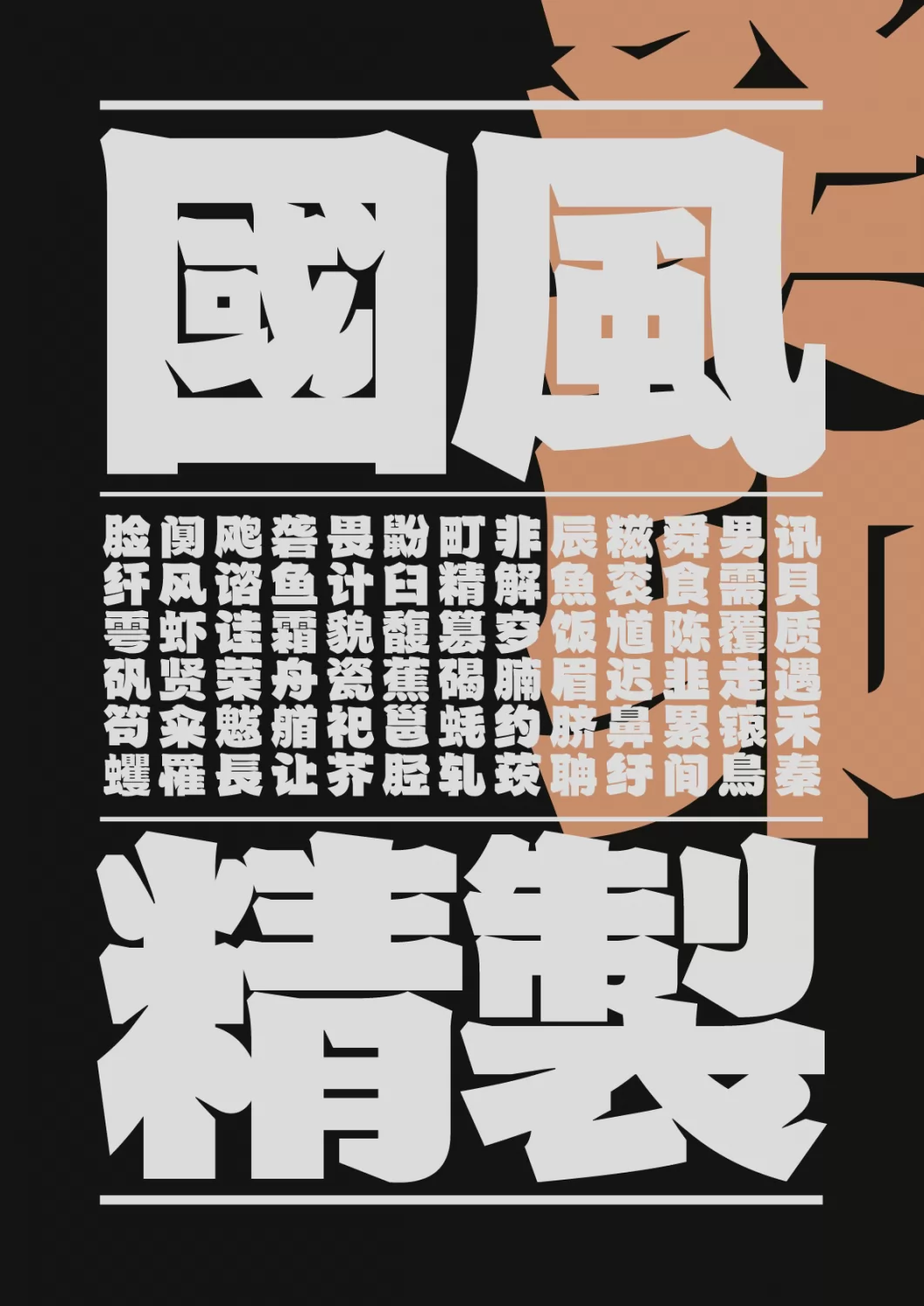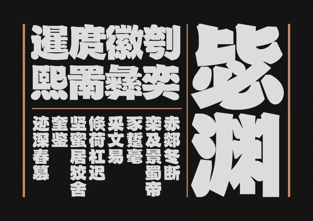 火山字型 茂林,是一款具有“颜体”气质的现代黑体标题字型,从《麻姑仙坛记》汲取其庄严雄秀之风骨。笔形的布点设计上,起笔露锋,收笔藏锋,转折顿笔;字形的结体设计丰厚、腴润,笔势开张,中宫舒展,四满方正,针对某些笔画交接处会作内切角的“气口”处理,以强调笔形的结构和走向;排版应用时呈现出严谨致密,紧凑规整、朴拙雄浑的平稳匀称之美。 “茂林”既有微观层的细节展现,又具宏观面的磅礴之势,我定义它是一款字体行业中少见的现代“匾额”“榜书”黑体字形。