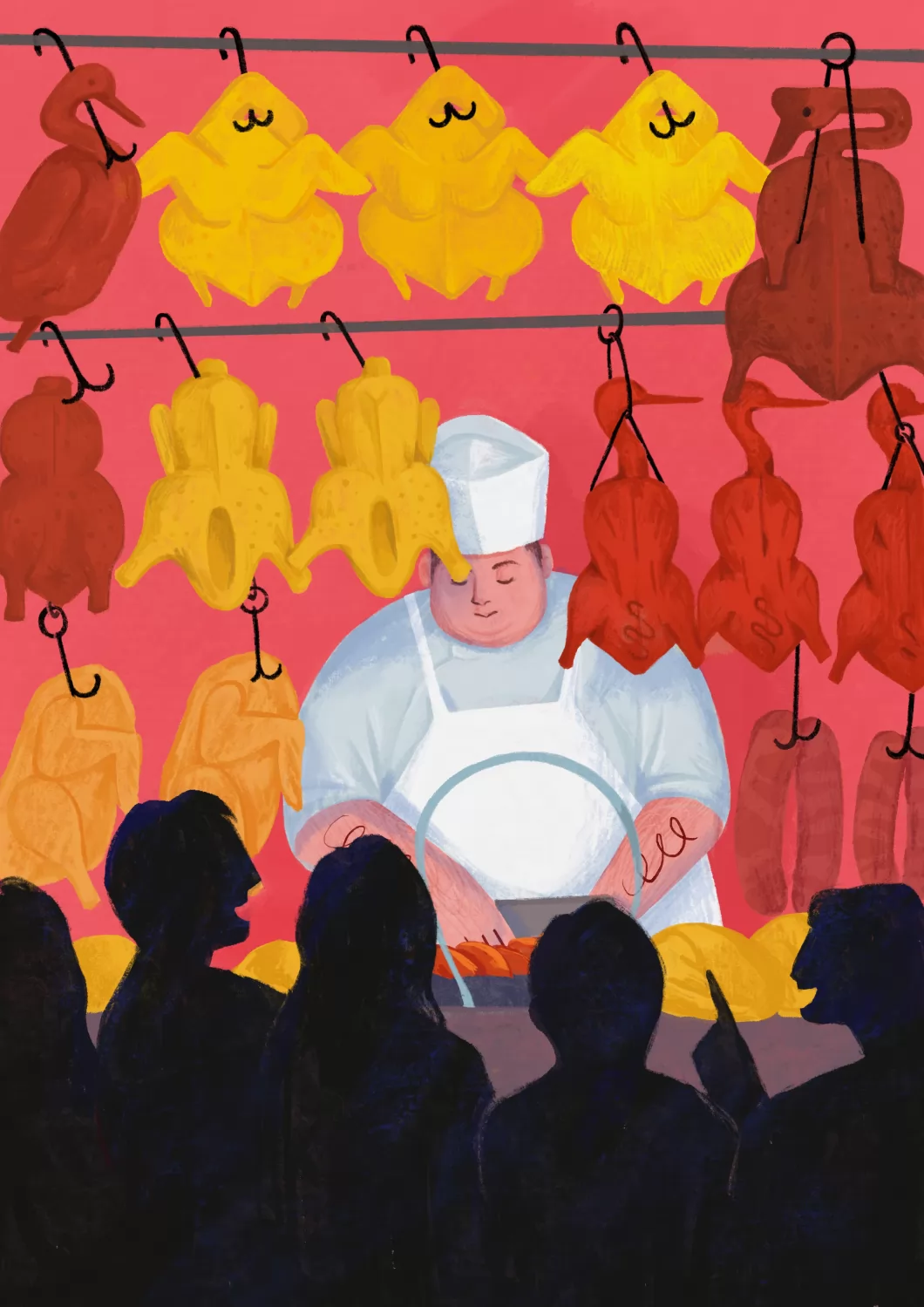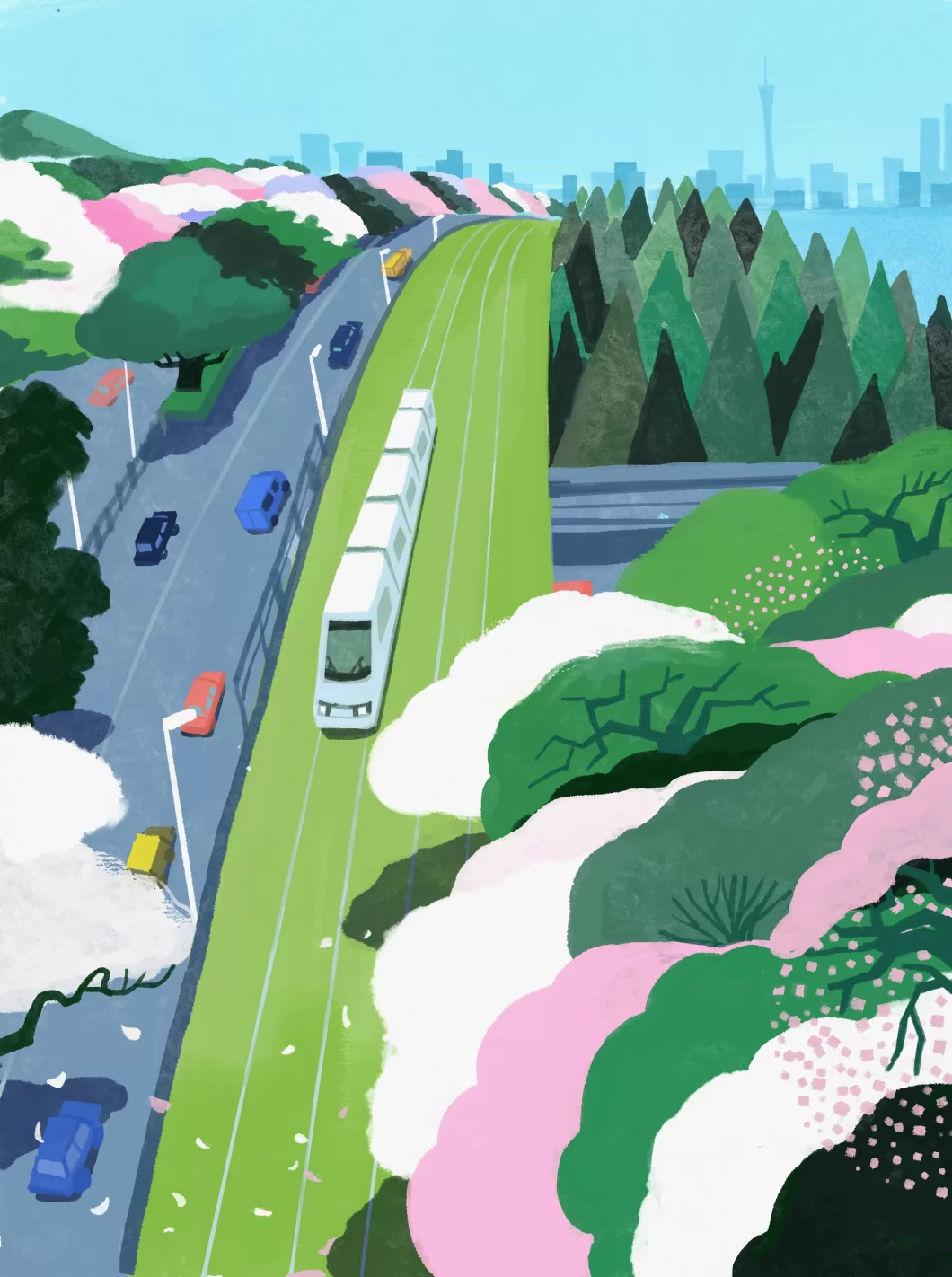 广州不仅有浓郁的美食之味,更有浓烈的生活之味:开到极盛的木棉花,红形形的花色映满了行人的视野,阔大的榕树那如云般一片又一片的绿色铺满了整座城市,常年充满翠意,还有烧鸭在炉火间翻腾,蓬勃的香气溢在街头巷尾,引人入胜·因此这一系列命名为“浓味州”,意在用最浓的色彩画出这座城市的香气之浓与人情之浓。