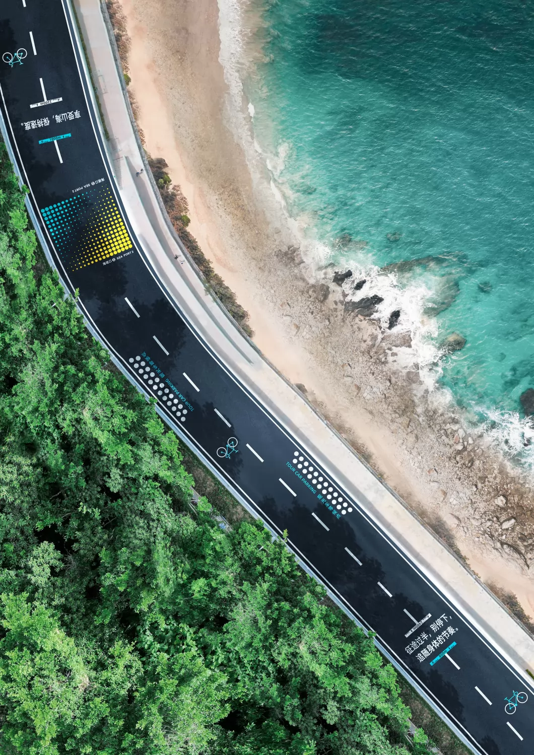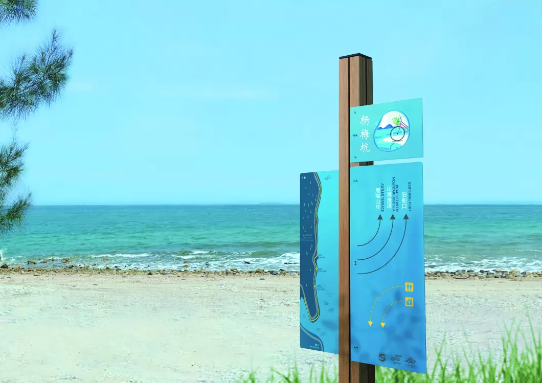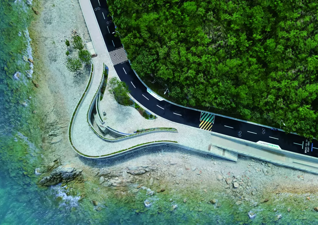 大鹏半岛位于深圳东部,以山海地貌著称,一次严重的飓风灾害后,岸线遭到破坏,当地政府开展的海堤重建计划,分布在环绕半岛的六个区域。我们的任务是连接不同的区域,产生独特的空间体验,同时捕捉这些地方的乐趣和活力。 “三重海岸防线”策略,使海堤不仅仅是一个隔绝、生硬的物理存在,还通过自然保育、环境提升、人居生活等措施,提供了一个更具弹性的旅游和文化空间。山海漫道是大鹏半岛海堤改造的一部分,作为“堤顶道路”限制机动车驶入,我们希望在几公里的道路上,采用独特且惊喜的体验性设计,引发公众的注意和兴趣,并引导访客在过程中产生了新的身份感,并有意识地将行为与环境产生对话,同时提高了对于区域的认识。 我们希望维护场地的完整性,在不做过多侵入性设计的前提下,将重点放在道路本身。为了保护体验过程的完整性,我们强化了“行动中阅读”的设计理念,连续性与期待感,前路体验的不确定性,帮助到访者以新颖而令人兴奋的方式阅读空间。通过软件辅助,将道路的转折、山体的阻挡、海天一色的空间等视线因素,充分纳入到道路行走中的视觉背景来考虑。包括所有寻路元素–道路、岸线入口、标牌、生态背景的知识介绍等,模块化结构可适应不同需求。