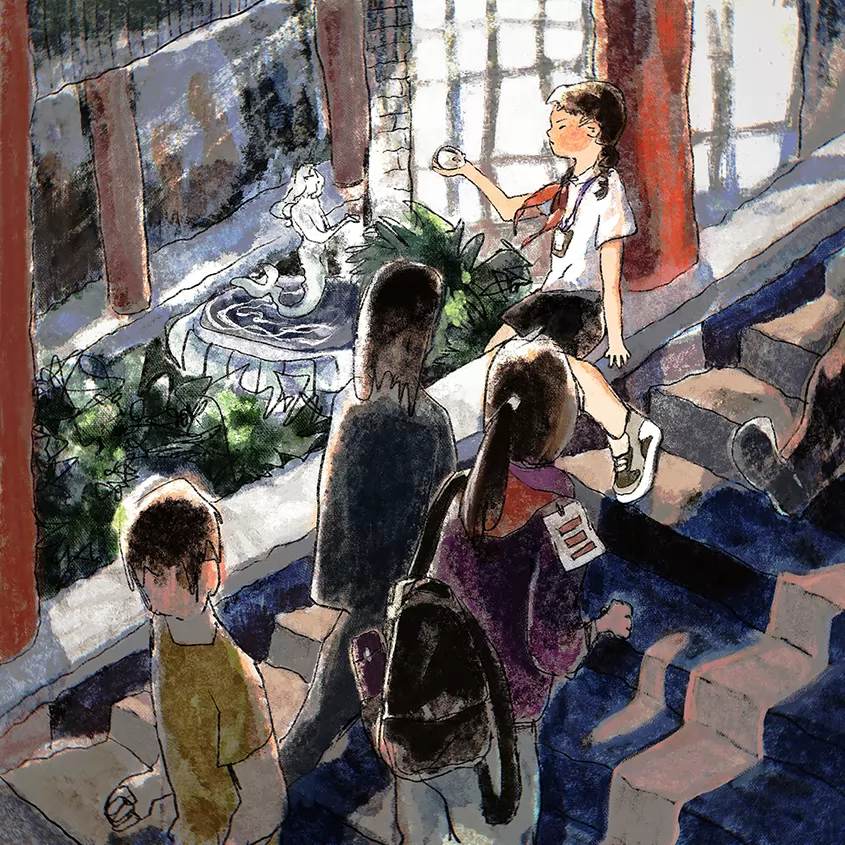 该系列围绕童年,玩伴和自然的记忆展现了丰富多彩的儿童生活。我使用大量铅笔笔触进行创作因为它贴近我对童年回忆的感受:笨拙的,幼稚的但又无比真挚。