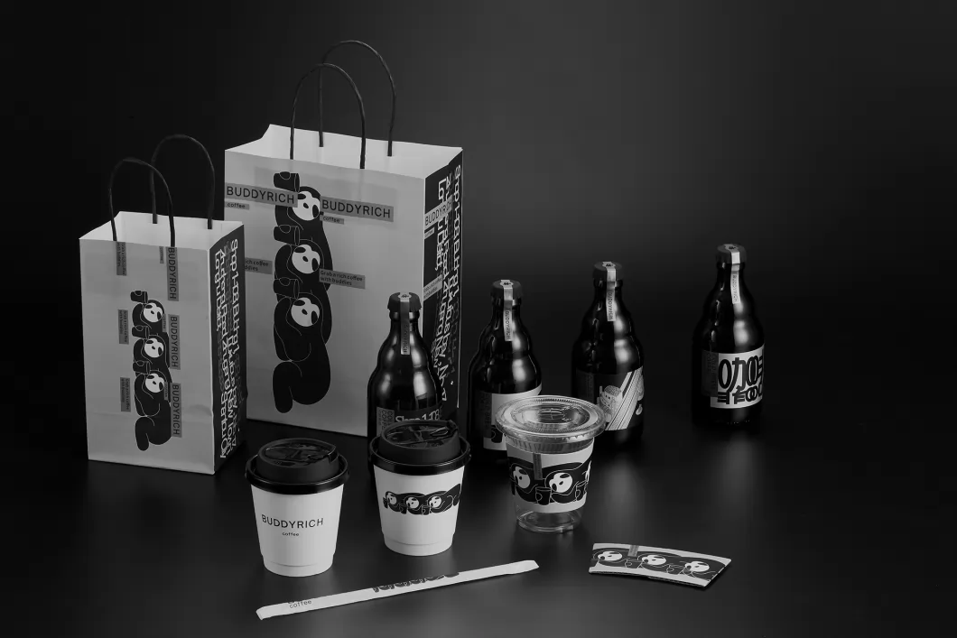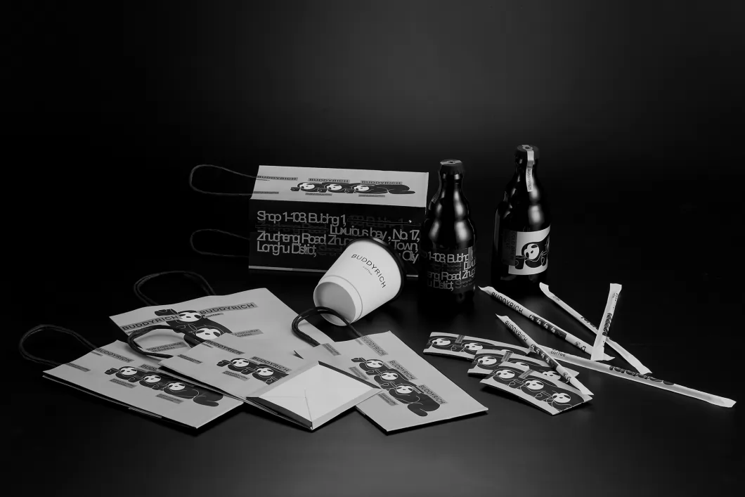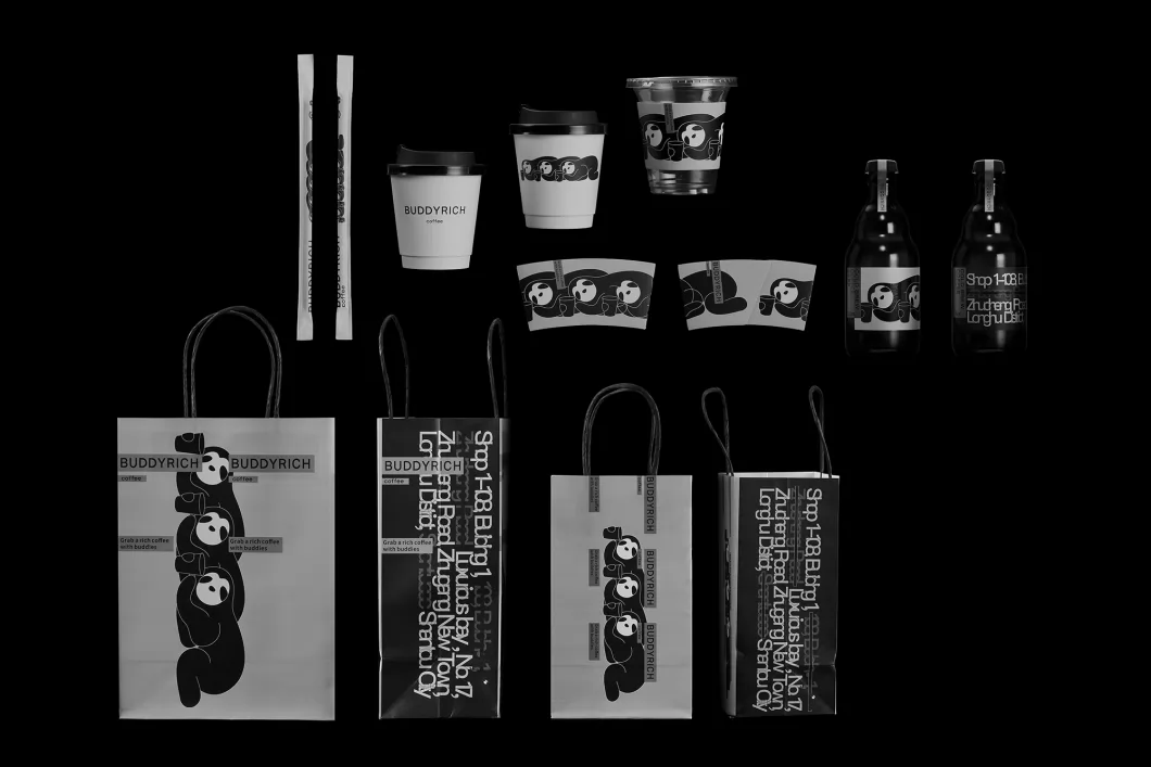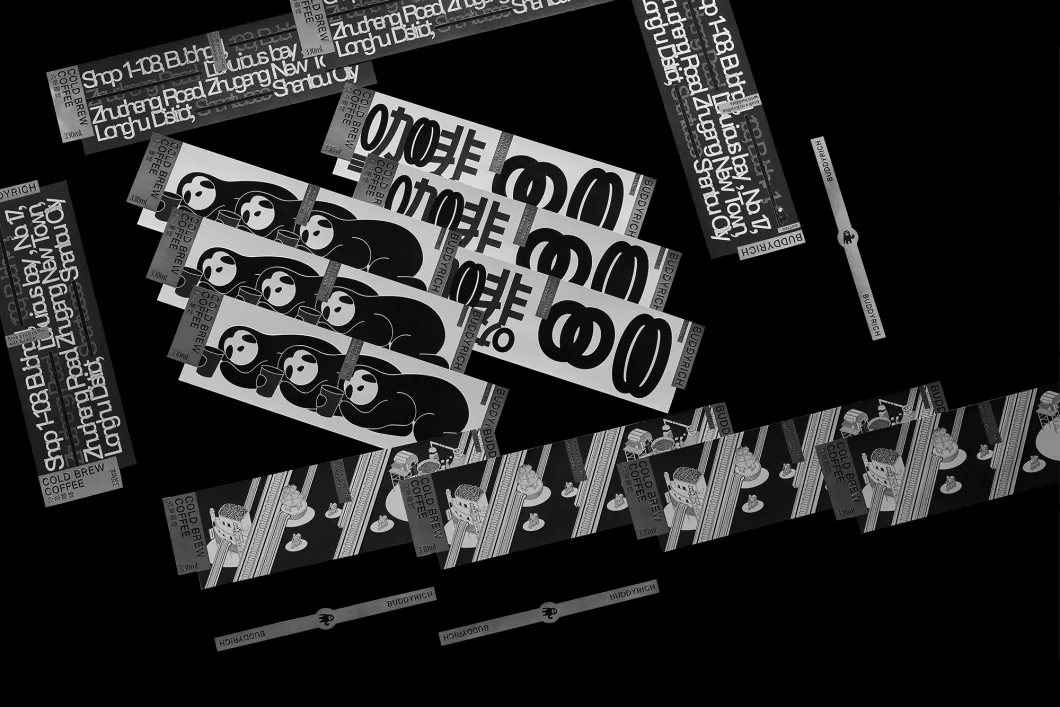 里奇是一个20多平的咖啡小店,本土同品类的设计单一、传统、保守,单调而无趣。里奇的咖啡是由多种原料混合调制而成,受众是喜欢尝试新口味的年轻消费者。客户希望能设计出品牌的混合多元概念。 常规的同类设计都是呈现出logo或单一品牌元素,而我们在设计中将中英文字体、品牌ip形象、咖啡店地址、城市建筑地标插画等多次复制重叠的实验尝试。多种元素以不同的错位混合的排版,暗示着品牌的多元混合个性,以这个概念引导到整套设计是以字体、插图拆分、重组、多元、混搭的思考。