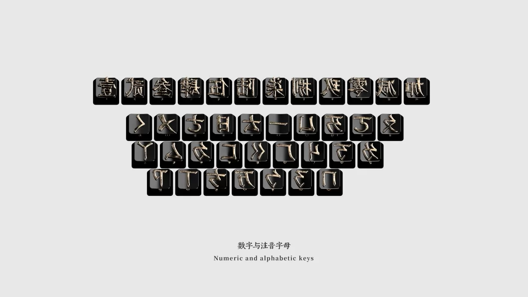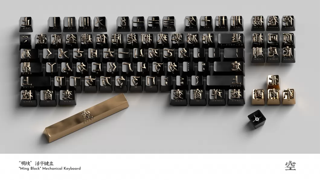 替换传统键盘上的所有符号,并赋予其新的功能—— 将键盘上的英文字母一一对应为注音符号, 功能区替换为简洁的汉语。 每个键帽都是一个活字。 机械键盘的键帽可以取下更换,取下后可用于印出汉字。 纪念林语堂发明的明快打字机,故名“明块”。