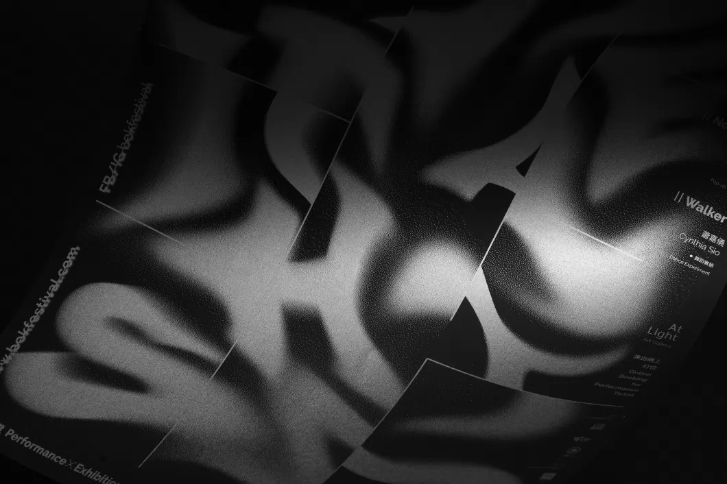 本届活动以慢节奏的轻柔音乐、舞蹈为主,搭配烟雾缭绕的剧场氛围。设计师以「光影」和「虚实」为切入点,将英文「GIVE IT A SHOT」和中文「非」字进行有机结合,并将烟雾弥漫的氛围感予以视觉化地呈现,让大众一同在慢节奏的烟雾弥散中感受虚幻、灵动的艺术情境。